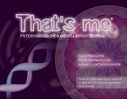 „That’s me – Psychologisches Gesellschaftsspiel” trägt zur Vertiefung der Selbsterkenntnis und zur Selbstentwicklung bei. Dank den auf den Karten befindlichen Hintergrunderklärungen wird zudem das psychologische Wissen der Spieler erweitert.